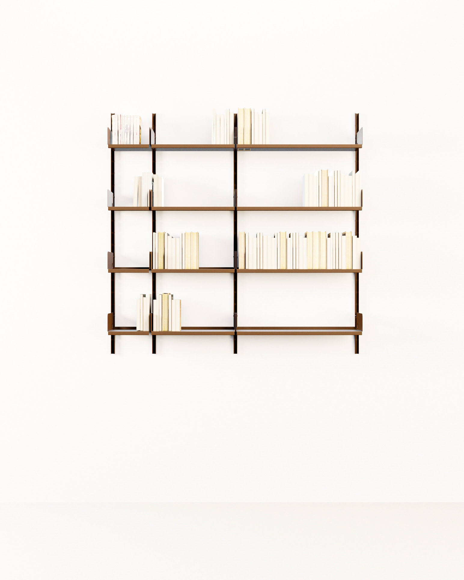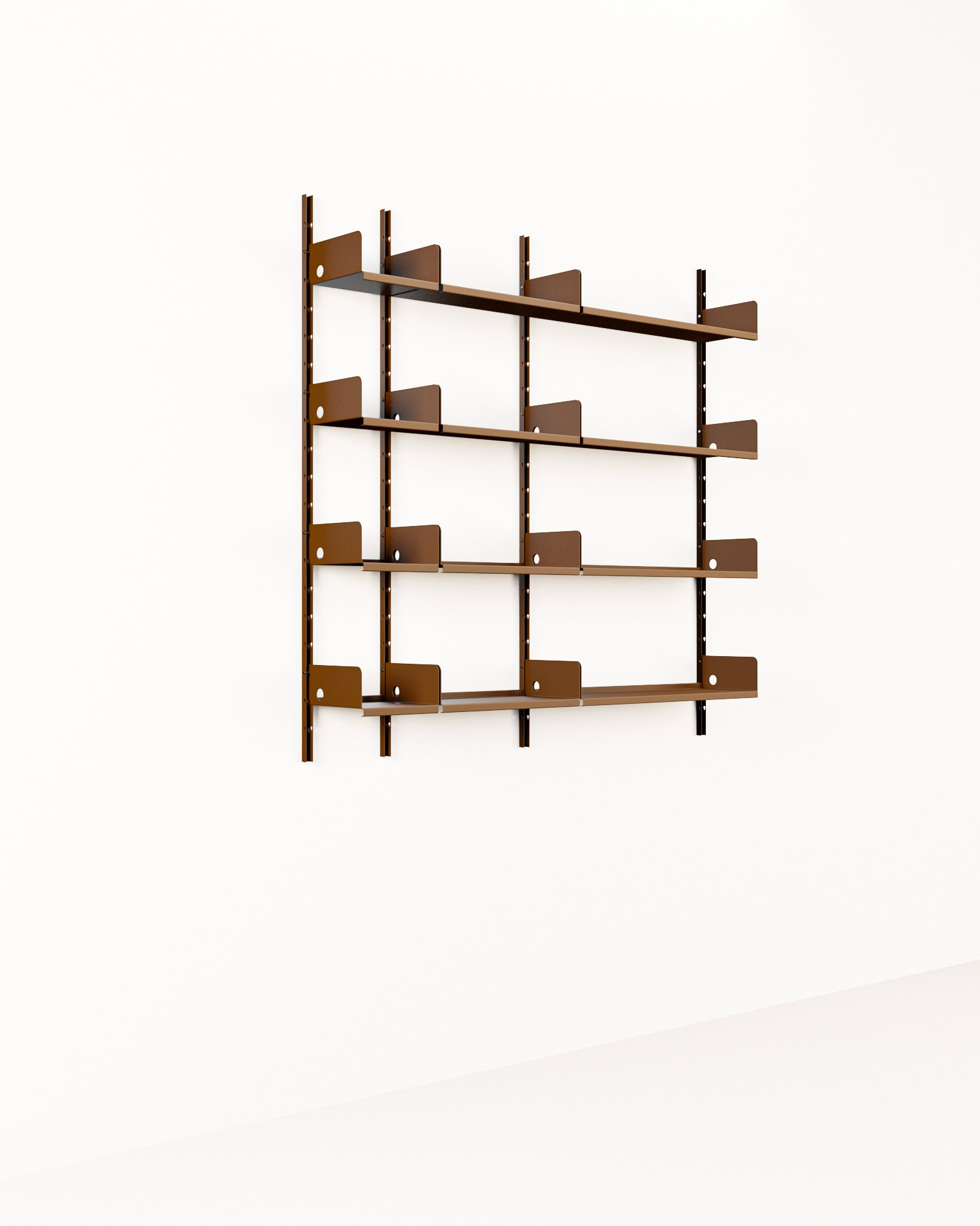 Composizione, 4 montanti H 150 cm, 4 ripiani 25×25 cm, 4 ripiani 50×25 cm, 4 ripiani 75×25 cm