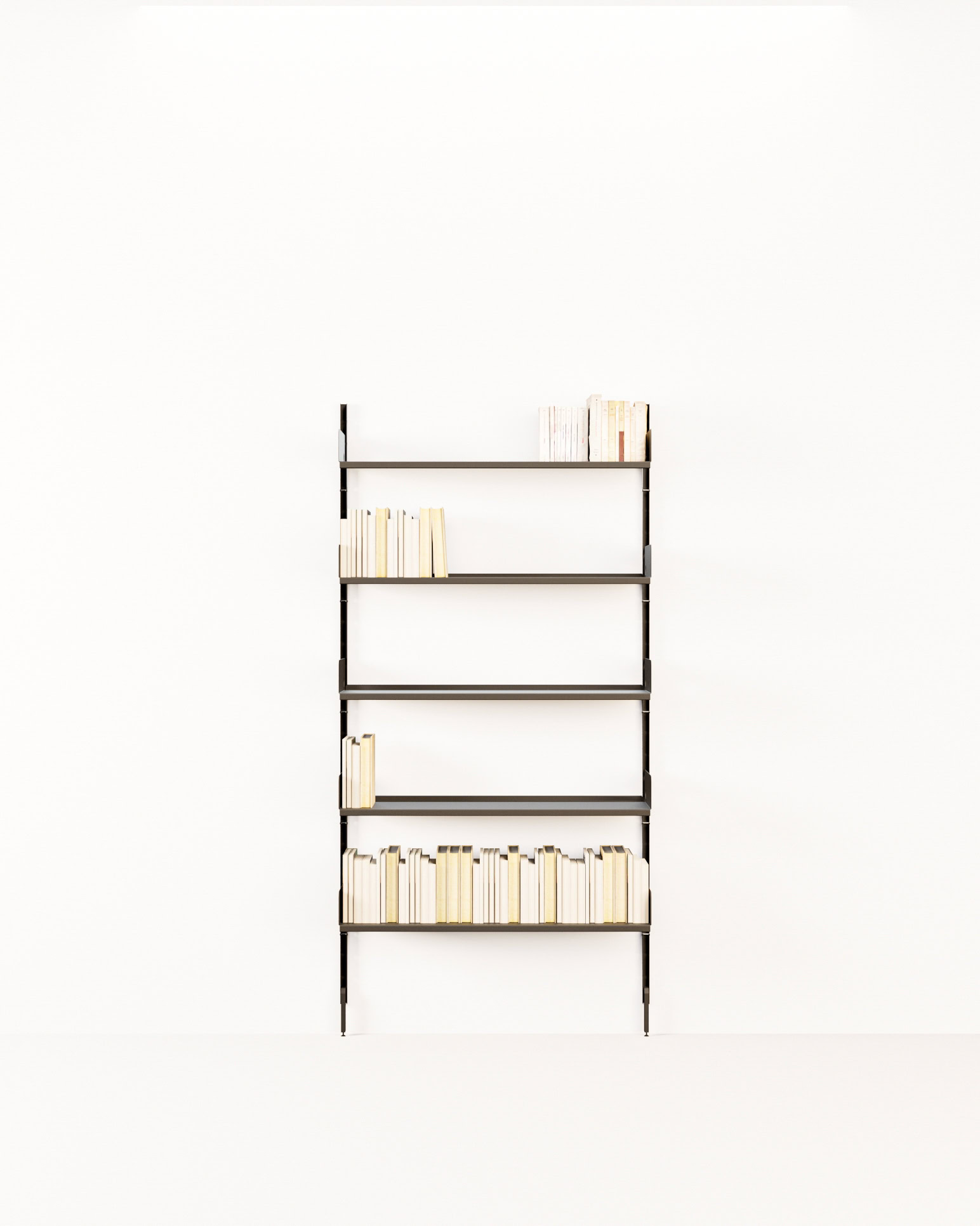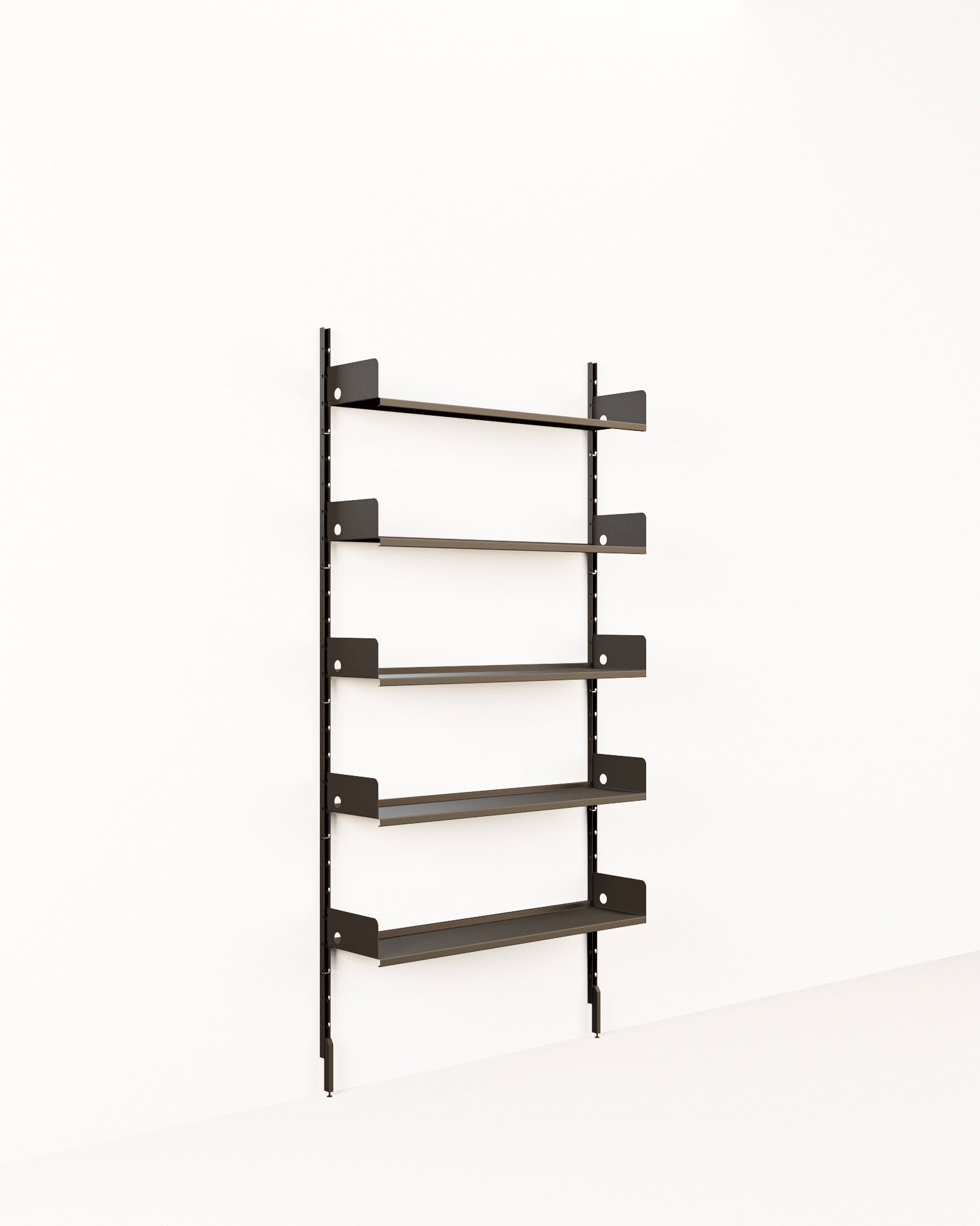 Sistema da parete, altezza 200 cmModulo ripiano largo 100 cm, H 200 cm, 2 piedini, 5 ripiani 100×25 cm