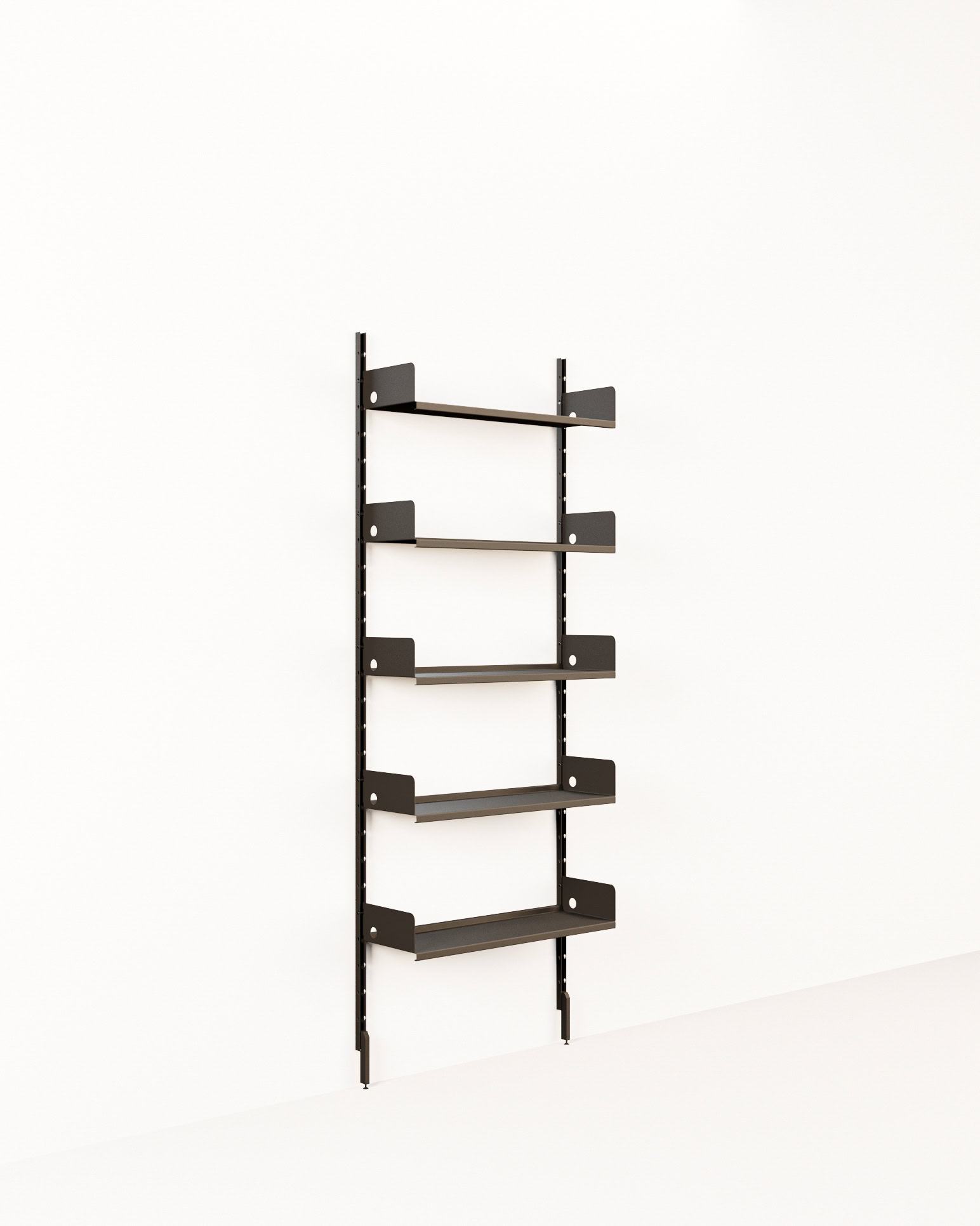 Sistema da parete, altezza 200 cmModulo ripiano largo 75 cm, H 200 cm, 2 piedini, 5 ripiani 75×25 cm