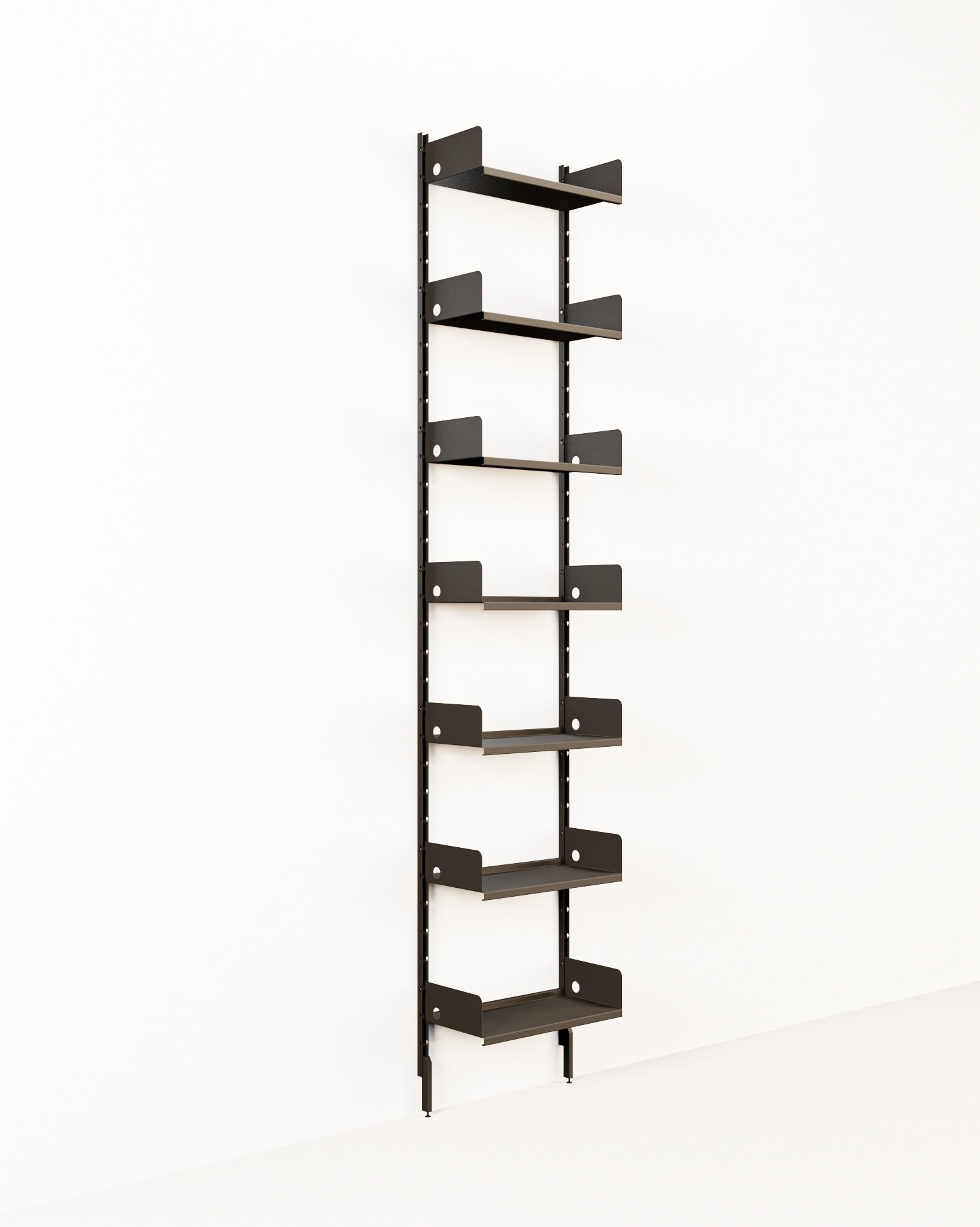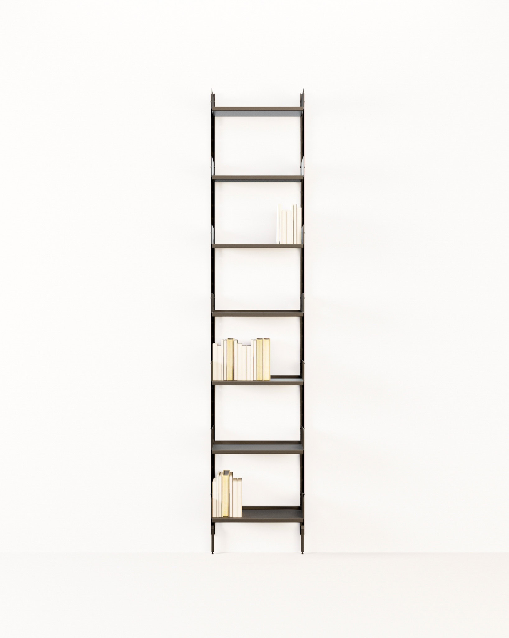 Nel living, in cucina, nello studio, nella stanza da letto o in lavanderia, gli elementi che compongono Alphabetica possono essere combinati per soddisfare tutte le esigenze e per adattarsi ad ogni ambiente. Il sistema è semplice e intuitivo, è composto da montanti e ripiani. Il sistema da parete Alphabetica si adatta ad ogni situazione perchè è composto da montanti con tre altezze differenti – 150, 200 e 250 cm – e ripiani e ripiani rovesciati con larghezze e profondità diverse.