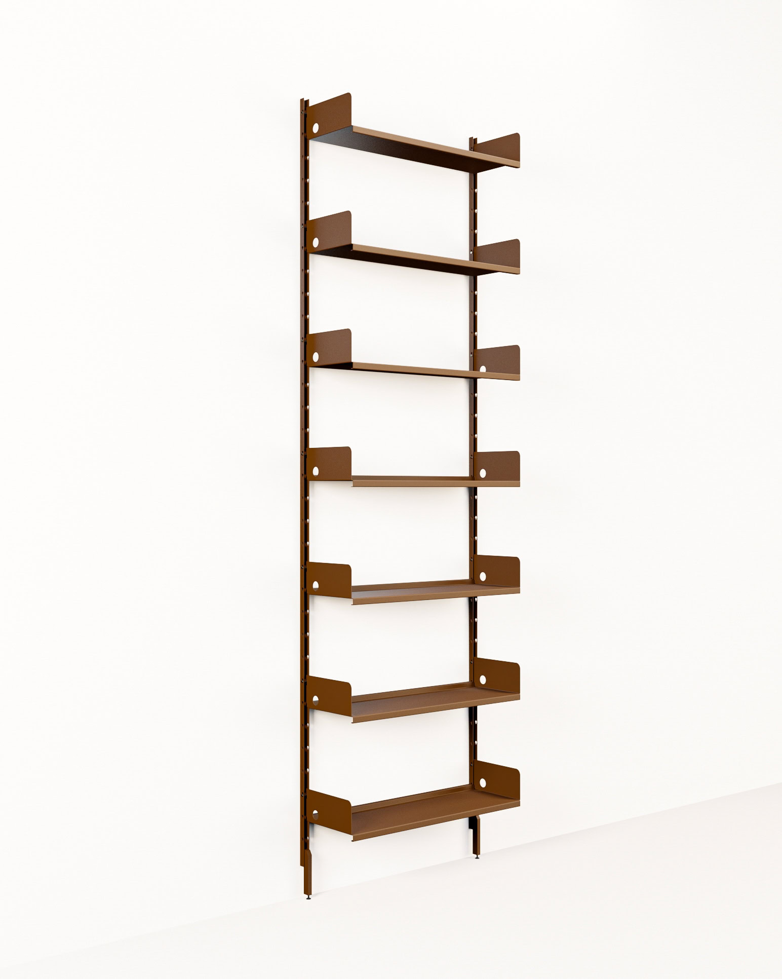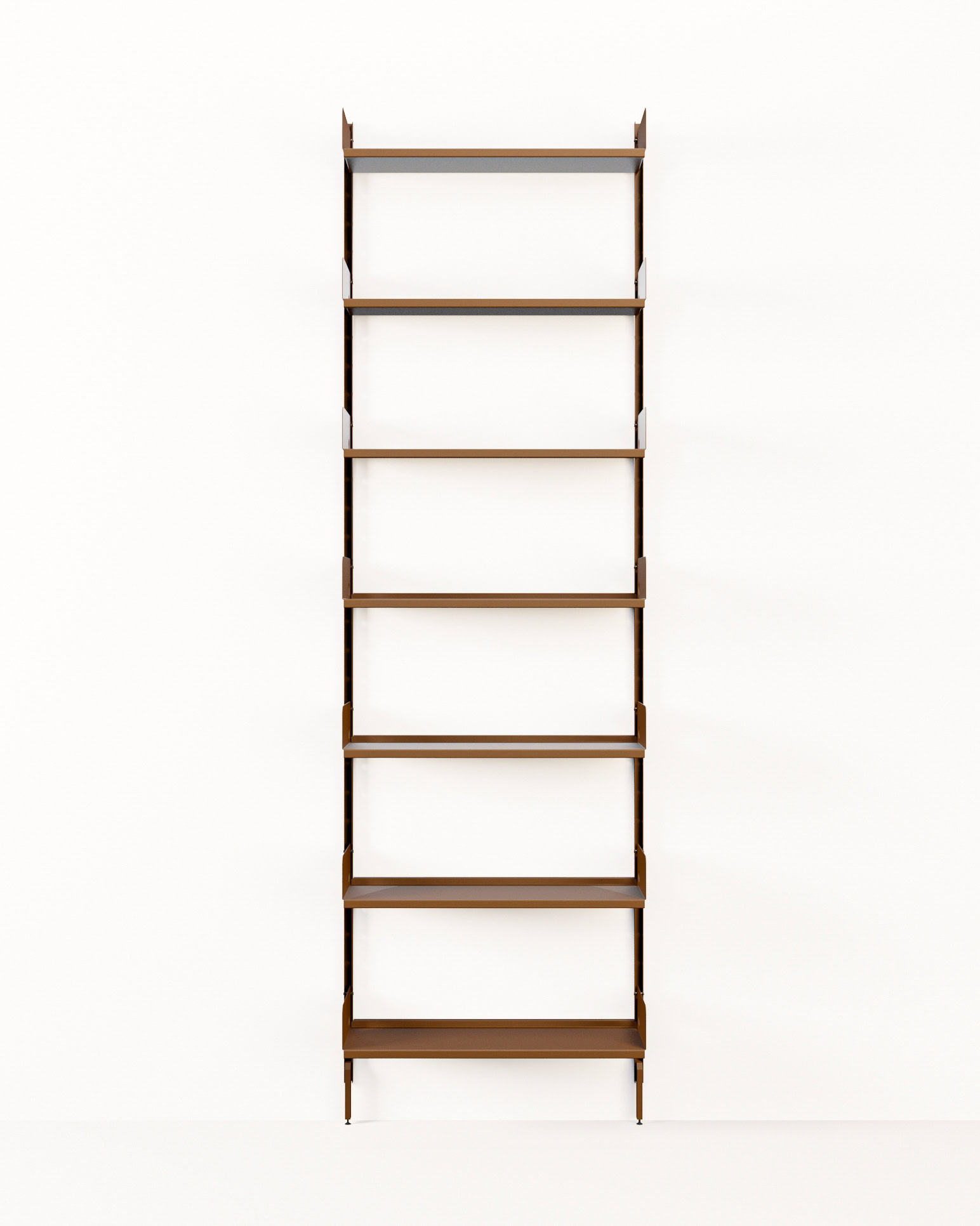 Sistema da pareteModulo ripiano largo 75 cm, H 250 cm, 2 piedini, 7 ripiani 75×25 cm