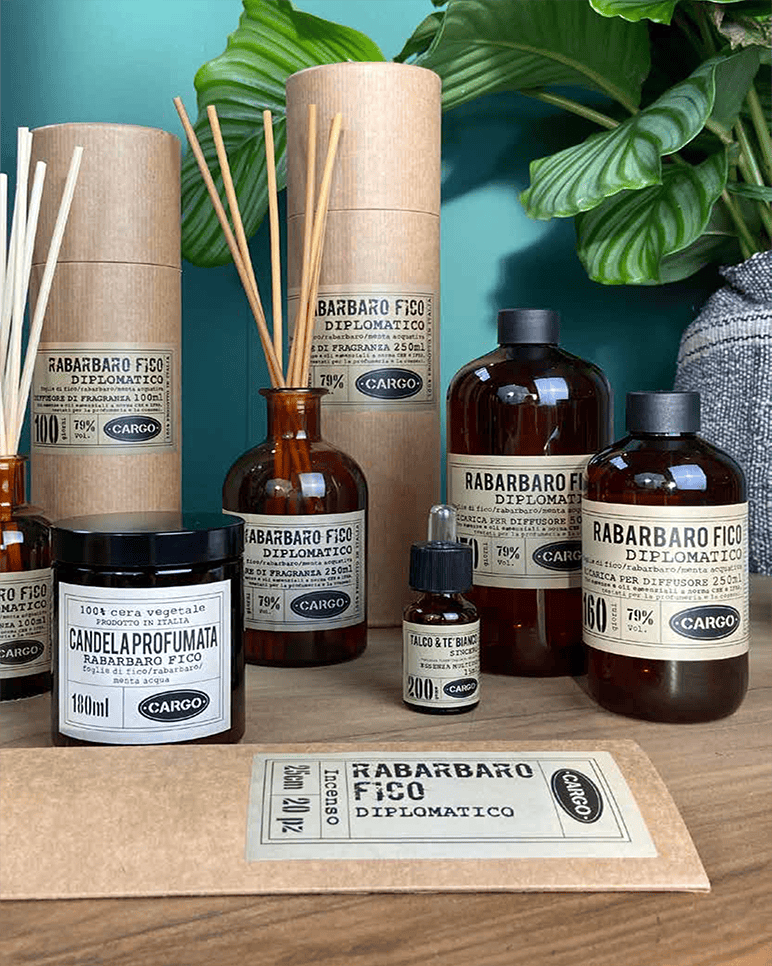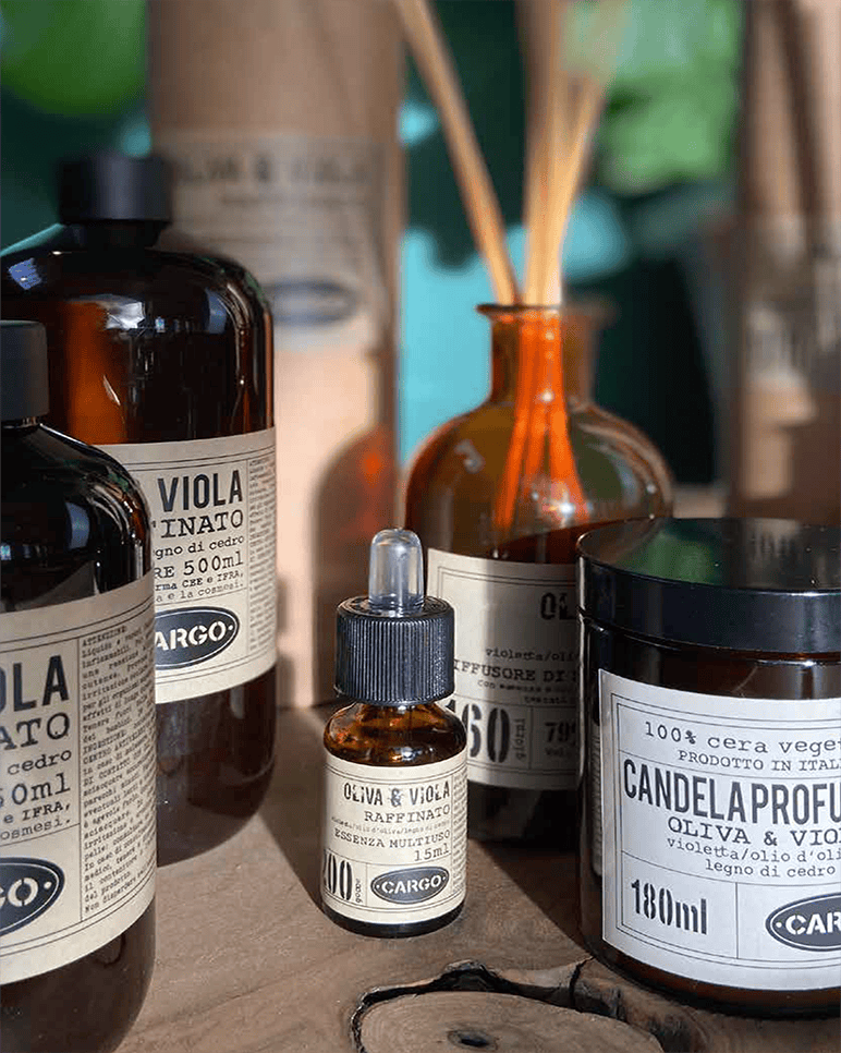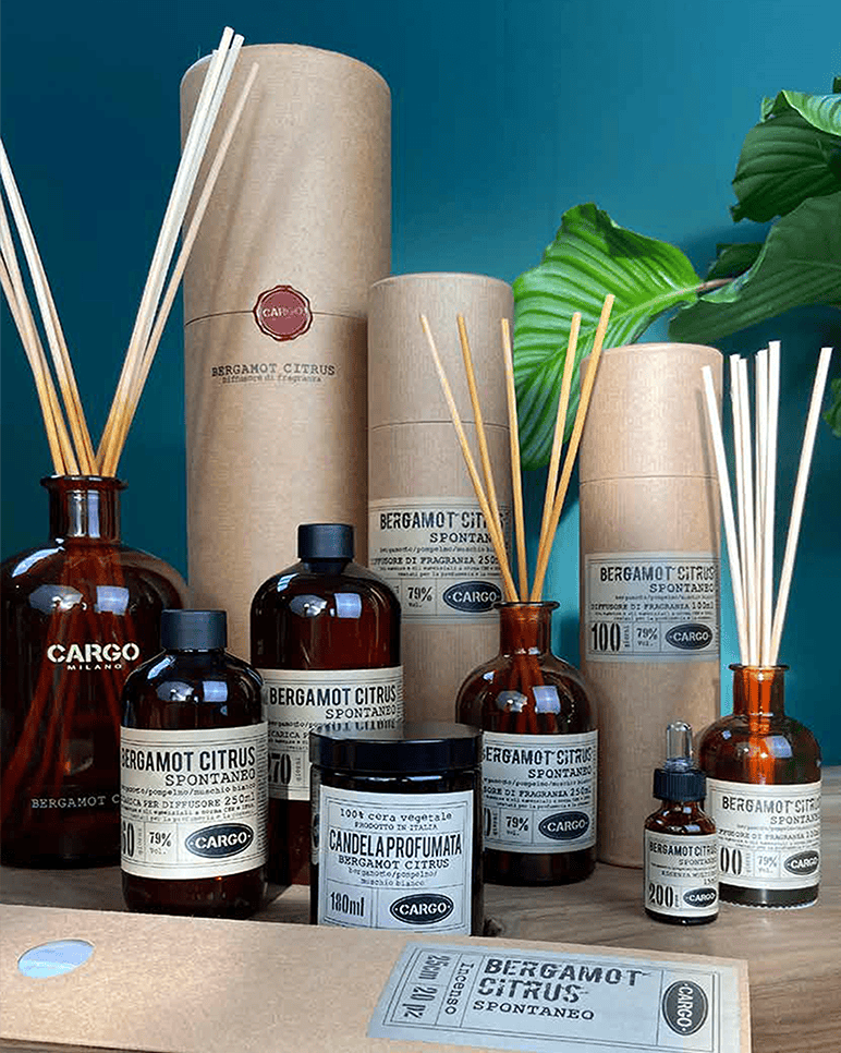 Non si è mai completamente vestiti senza profumo. Si dice. E uno spazio non è completamente arredato se non ha un’anima profumata, che racconta il tuo modo di essere. Diciamo noi. Forma e contenuto: l’emozione si fa con gli occhi, ma soprattutto con il naso: materie prime selezionate scrupolosamente, estratti puri e lavorazione artigianale, per un prodotto naturale e di qualità, dove s’incontrano tradizione e creatività. Le profumazioni per la casa della Cargo Collection sono disponibili in vari formati, diffusori per ambiente e stick da 1L, 250 ml e 100 ml, candele da 150 ml, essenza 15 ml e lo spray 100 ml.
