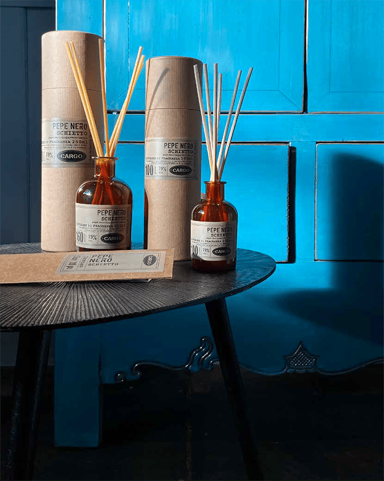 Produzione artigianale per momenti speciali: i diffusori della Cargo Collection utilizzano i migliori ingredienti. Le essenze sono accuratamente