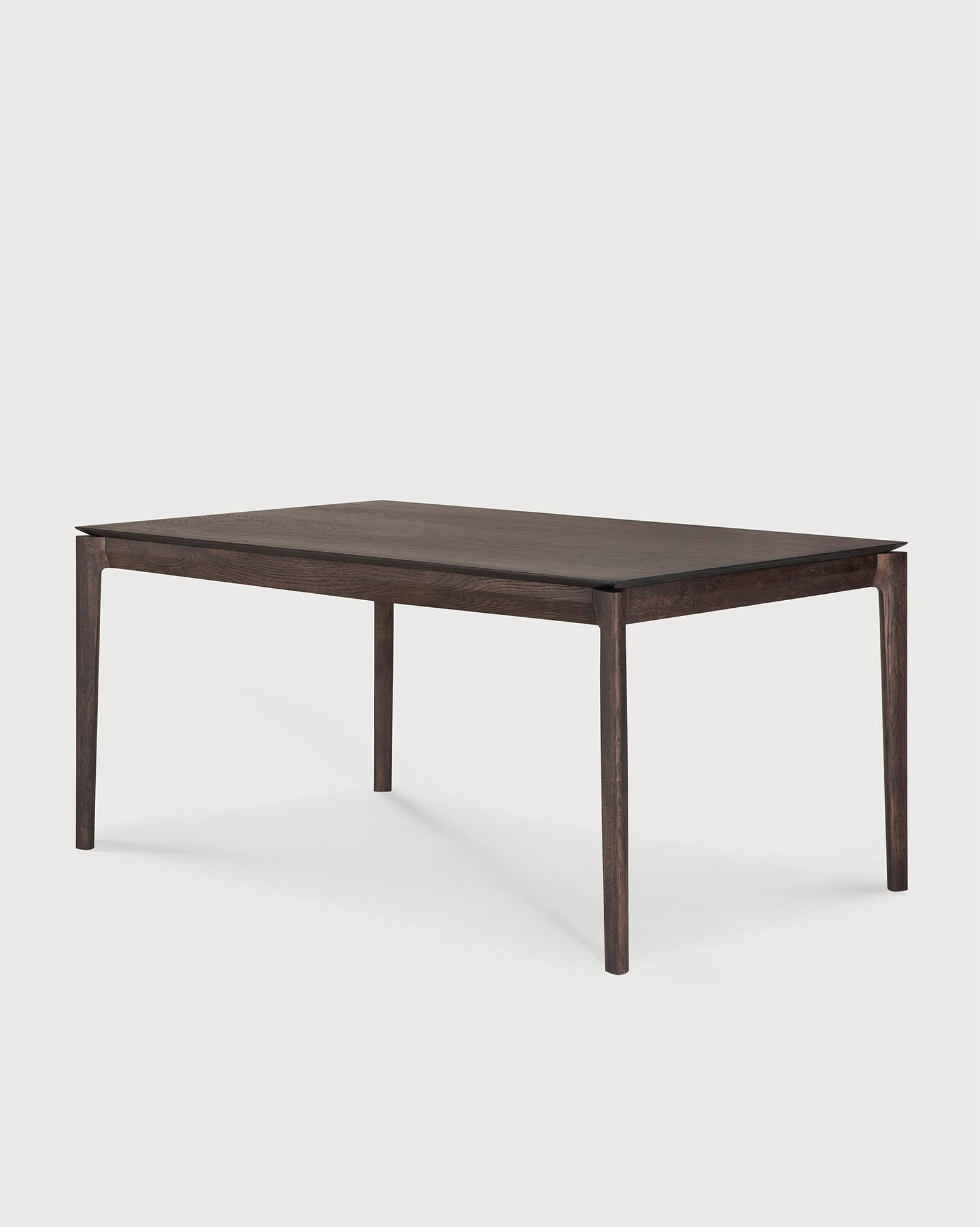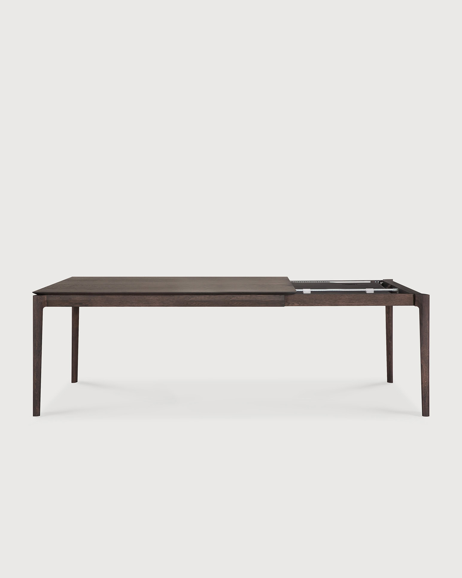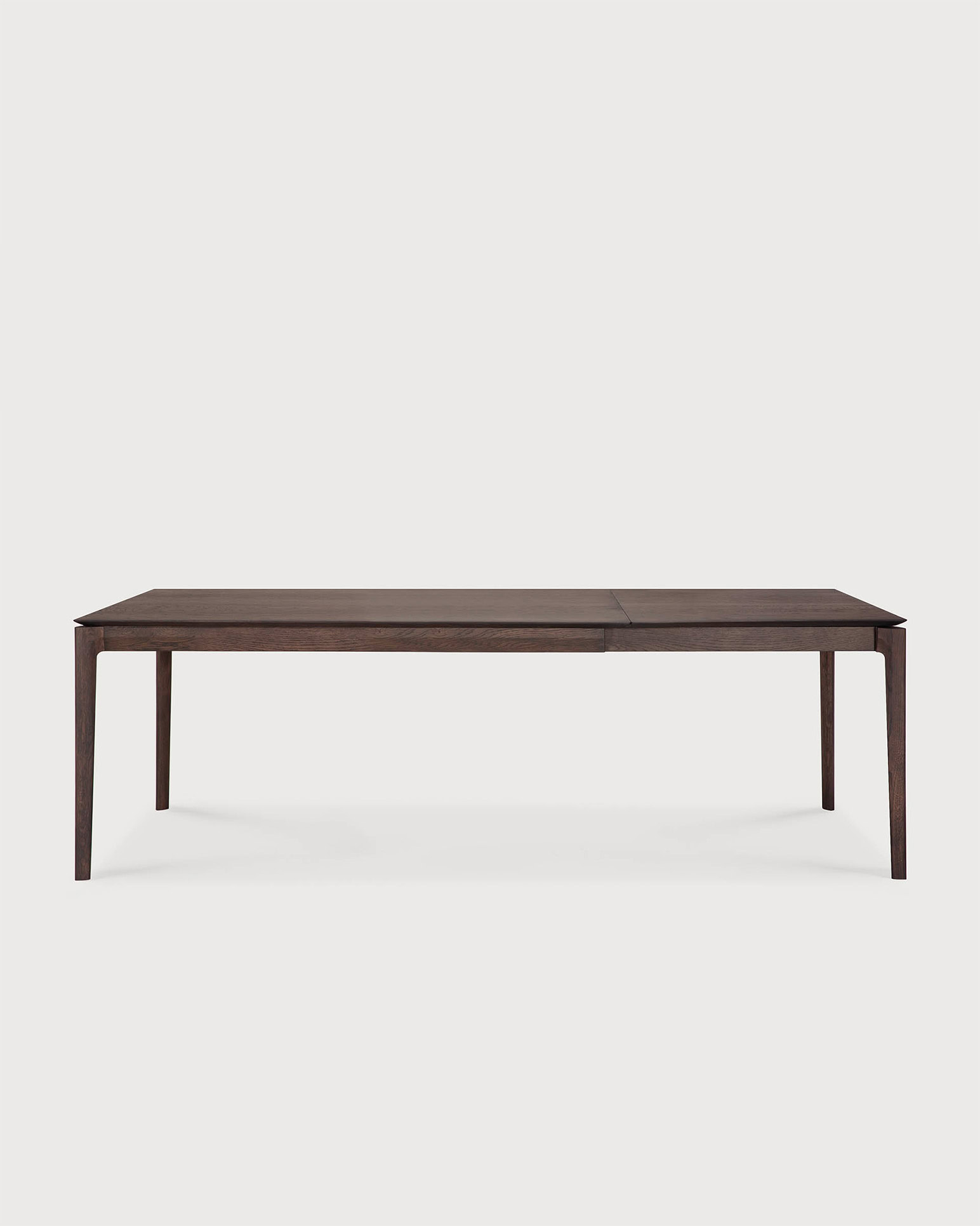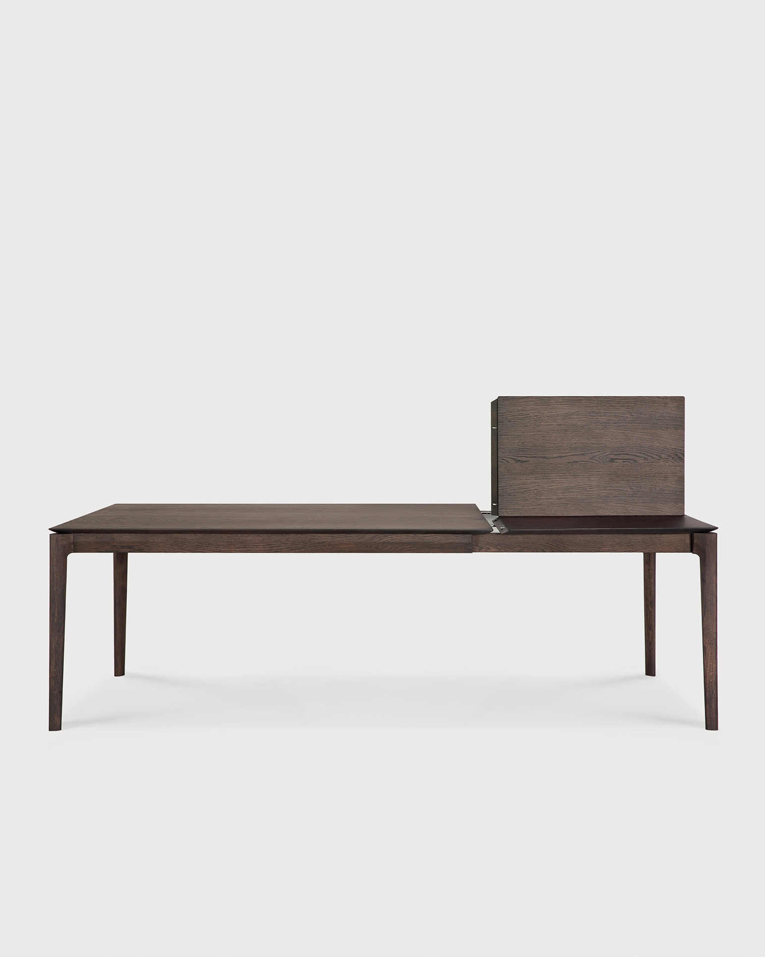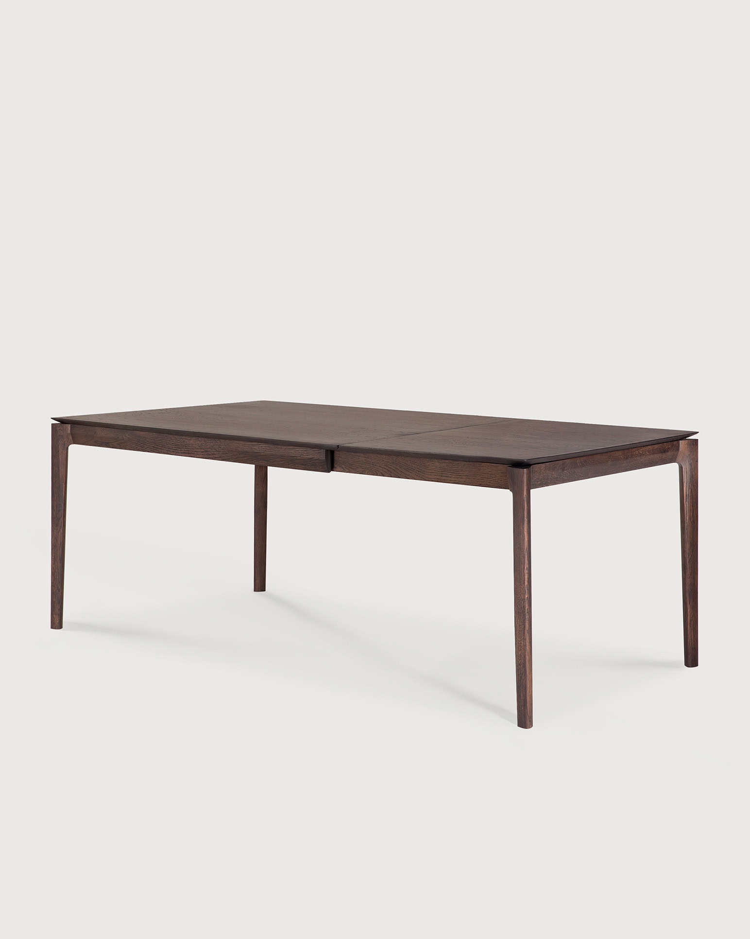 Il tavolo da pranzo allungabile BOK di Ethnicraft in legno di rovere verniciato marrone è uno dei modelli di riferimento della proposta Cargo. La forma ariosa e la solidità dei materiali conferiscono a questo tavolo un design senza tempo e di grande eleganza. Il tavolo chiuso, dalle proporzioni contenute, è allungabile fino a 240 cm di lunghezza per permettere così un’ampia e generosa superficie di appoggio per ospitare fino a 10 persone.Cargo seleziona i prodotti Ethnicraft per offrire il meglio del design contemporaneo, qualità e durabilità.