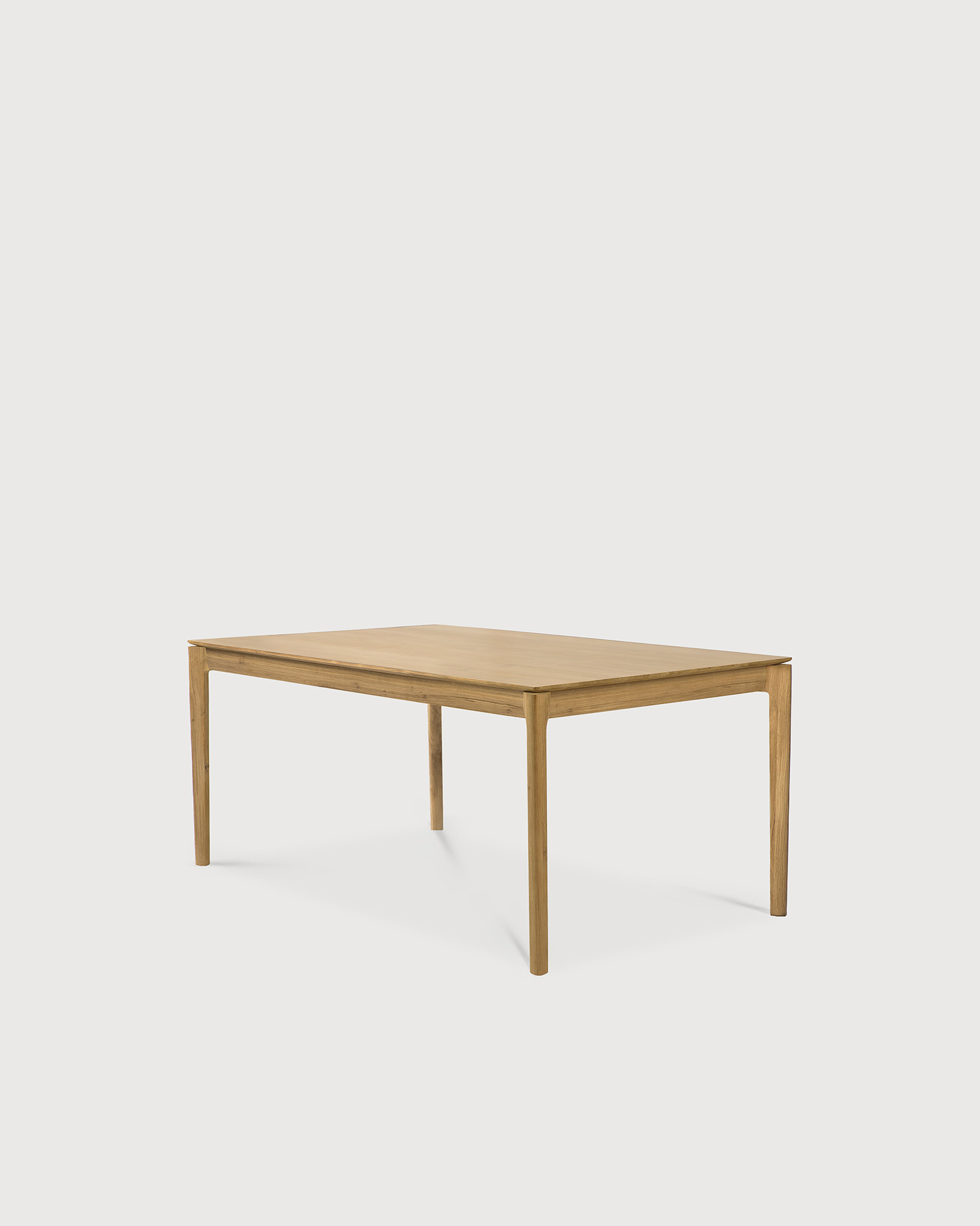Il tavolo allungabile BOK di Ethnicraft, dal design contemporaneo, si caratterizza per una struttura essenziale e al tempo stesso ricca di dettagli e di particolari che gli conferisce una presenza leggera, discreta ed estremamente elegante. BOK è un tavolo capace di valorizzare sia gli spazi contemporanei che gli interni classici. La qualità dei materiali assicura solidità e durevolezza. La modularità delle dimensioni (da formati più importanti a soluzioni più compatte), la possibilità di allungarsi, e l’ampia possibilità di personalizzazione delle finiture rendono questo tavolo estremamente versatile. BOK allungabile è disponibile in 5 misure: 120-180×90 cm; 140-220×90 cm; 160-240×90 cm; 180-280×100 cm; 200-300×100 cm e tutti con altezza 76 cm.