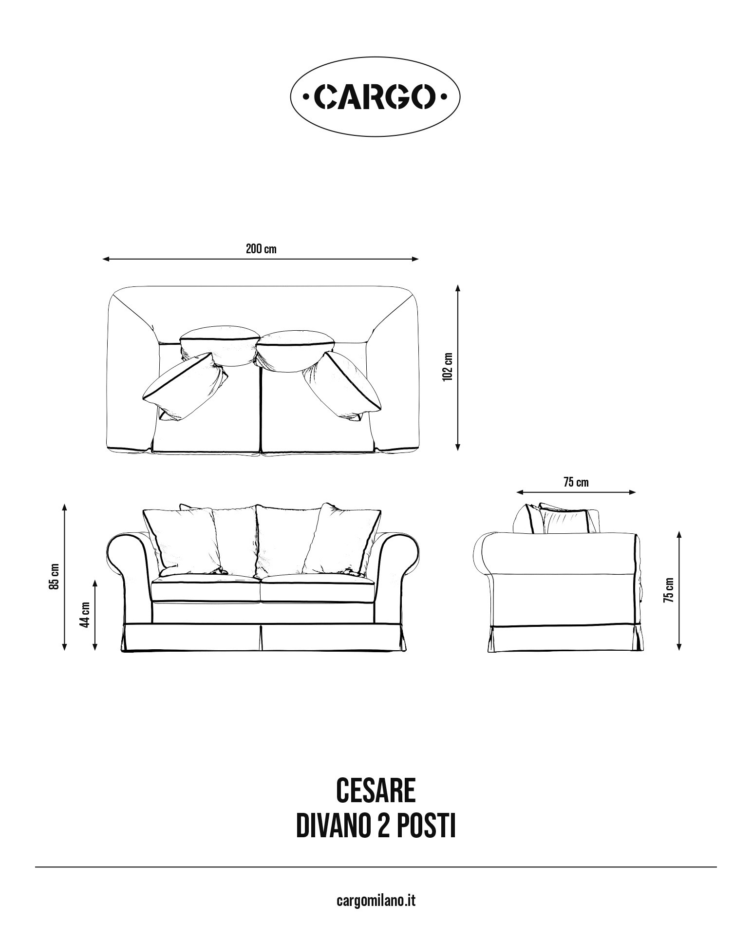 Cesare due posti è il divano dal disegno classico della Cargo Collection, scelto da chi desidera arredare la zona giorno con uno stile elegante e funzionale. Grazie alle sue proporzioni contenute questo divano rappresenta un perfetto equilibrio tra estetica senza tempo e praticità quotidiana, diventando un elemento centrale del living.