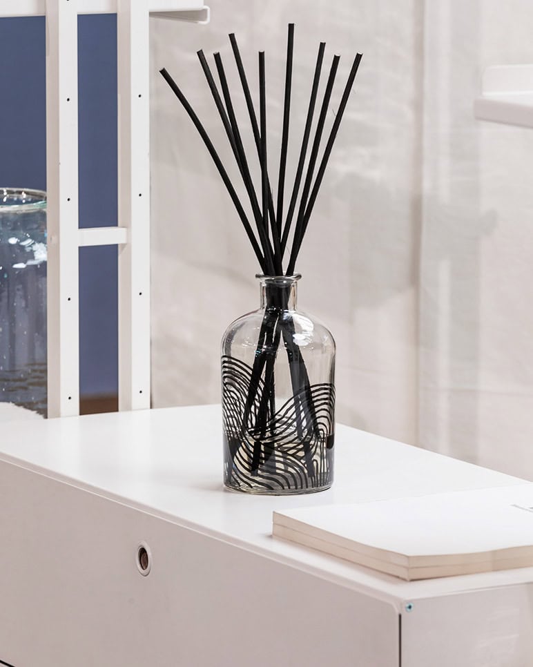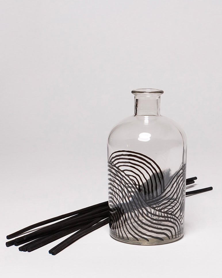 Diffusore d’essenze firmato ScarabottoloBottiglia in vetro decorata in serigrafia