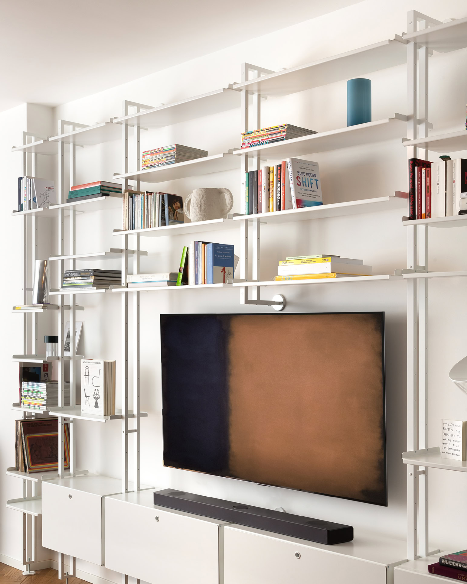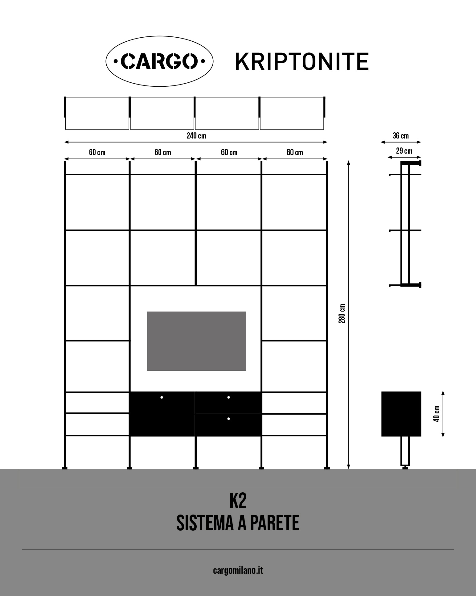 Per informazioni e ordini contatta i nostri consulentiK2 è il sistema flessibile, pratico e solido di Kriptonite. Con il suo design essenziale e robusto si adatta ad ogni ambiente, sia domestico che di lavoro, come un ufficio o sono spazio espositivo. La versione a parete del sistema K2 di Kriptonite è composta da montanti, ripiani e contenitori. Si fissa a parete in alto, scarica il peso a terra.