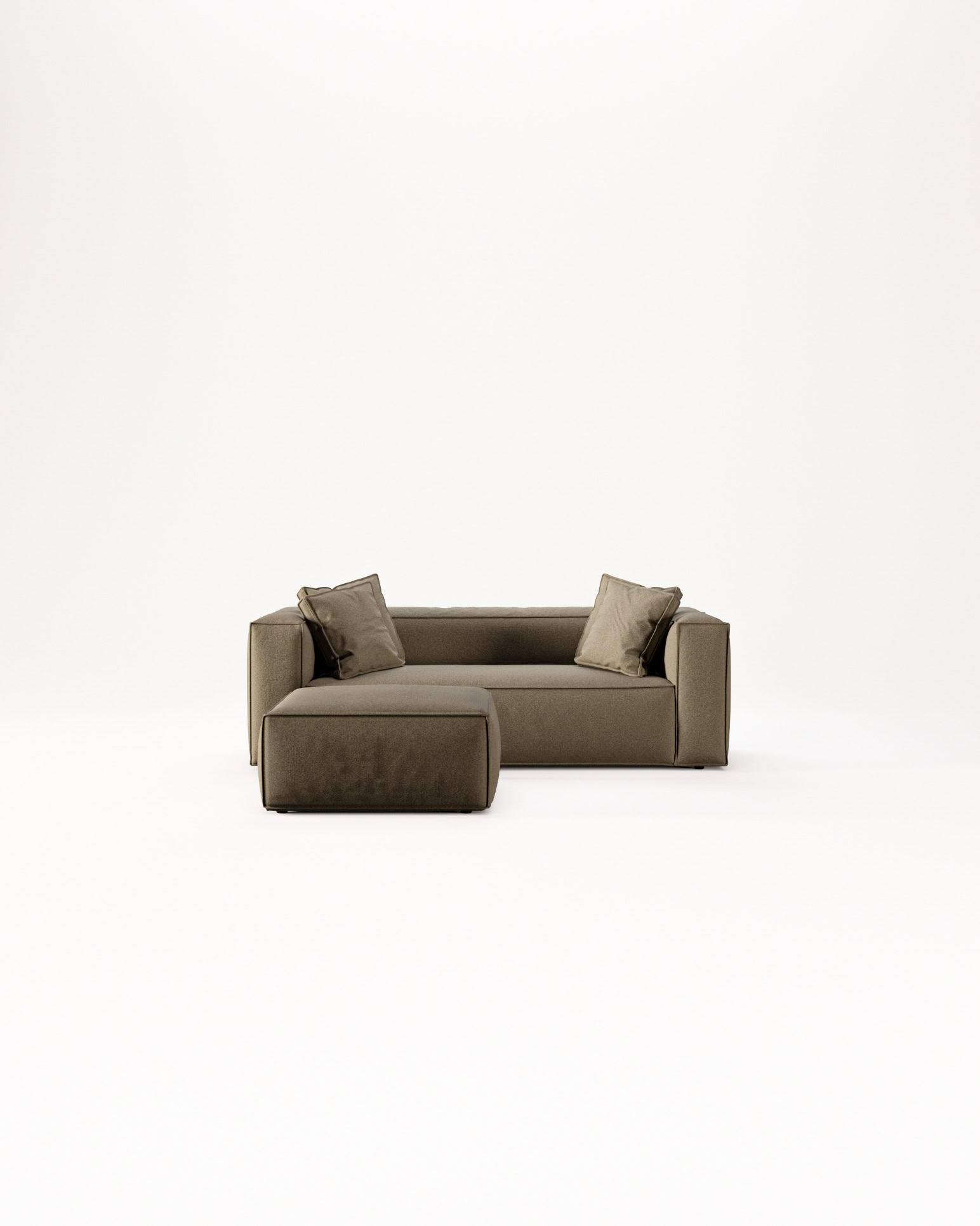 Long Island – Composizione 1: divano con doppio bracciolo e pouf.