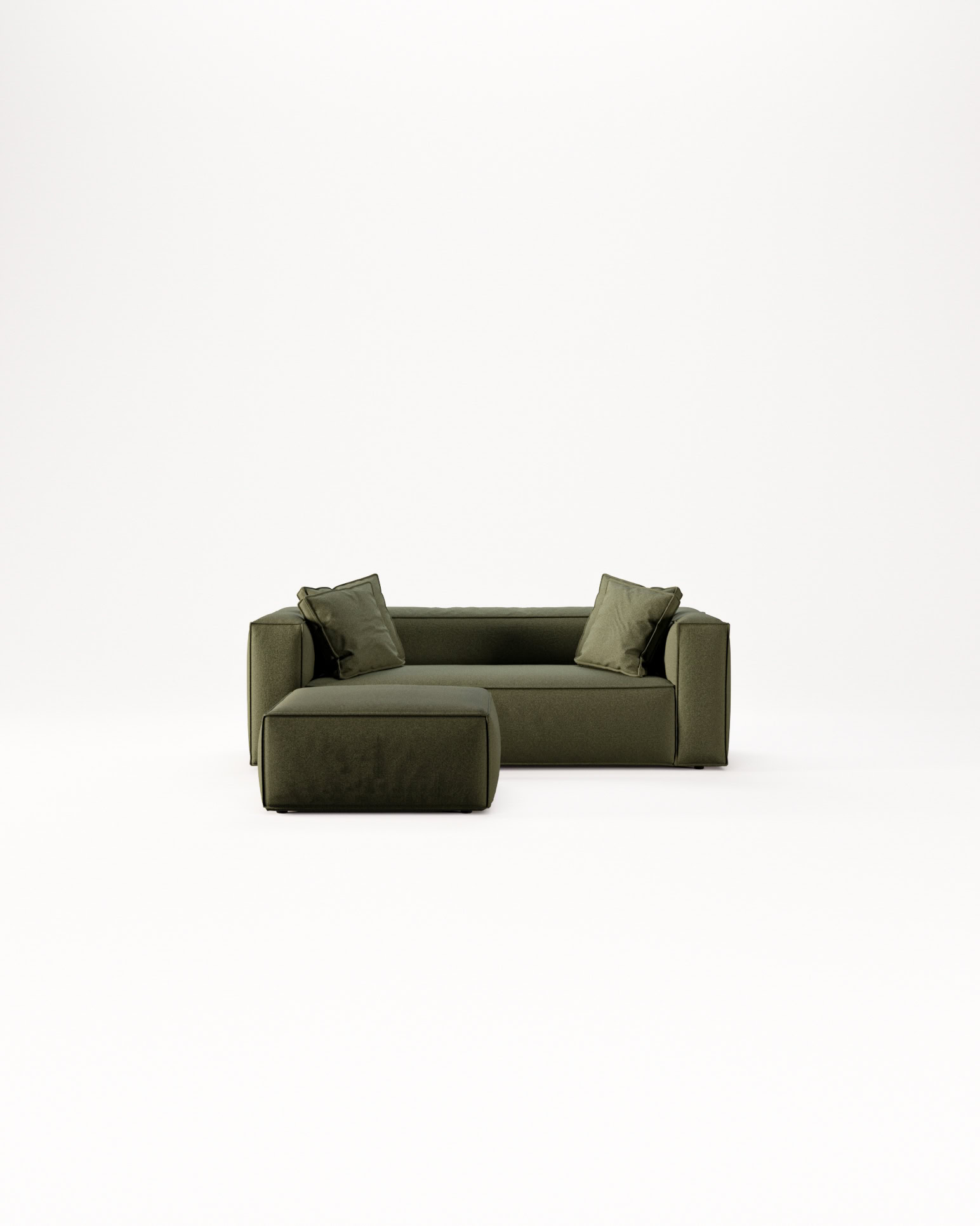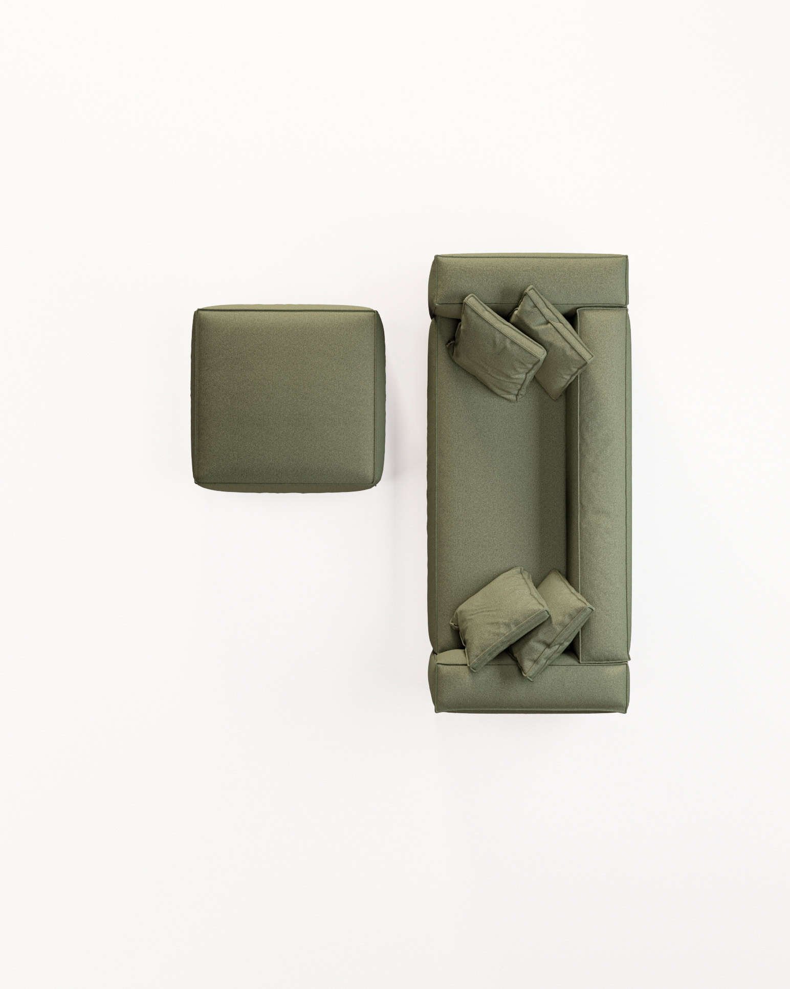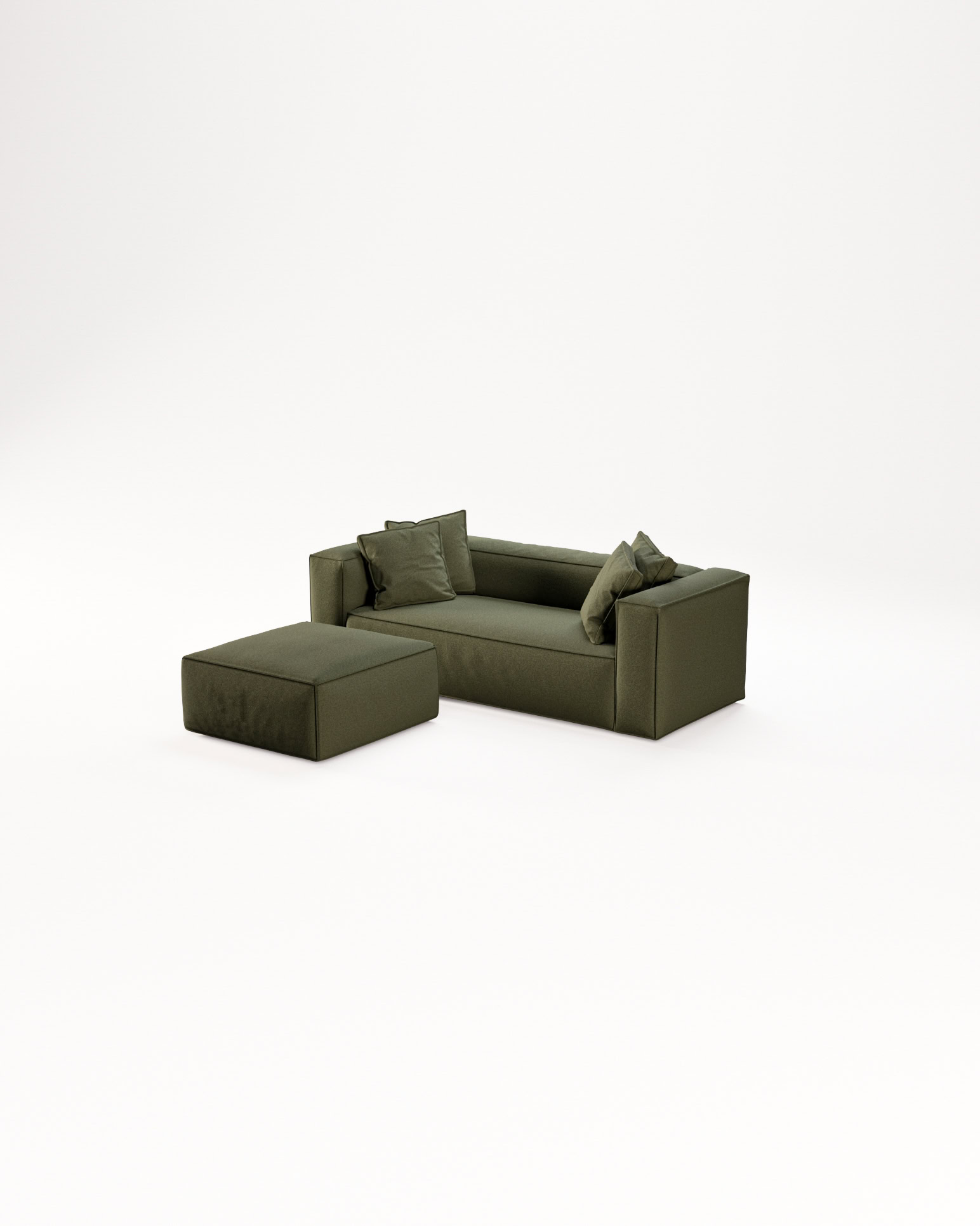 Long Island – Composizione 1: divano con doppio bracciolo e pouf.