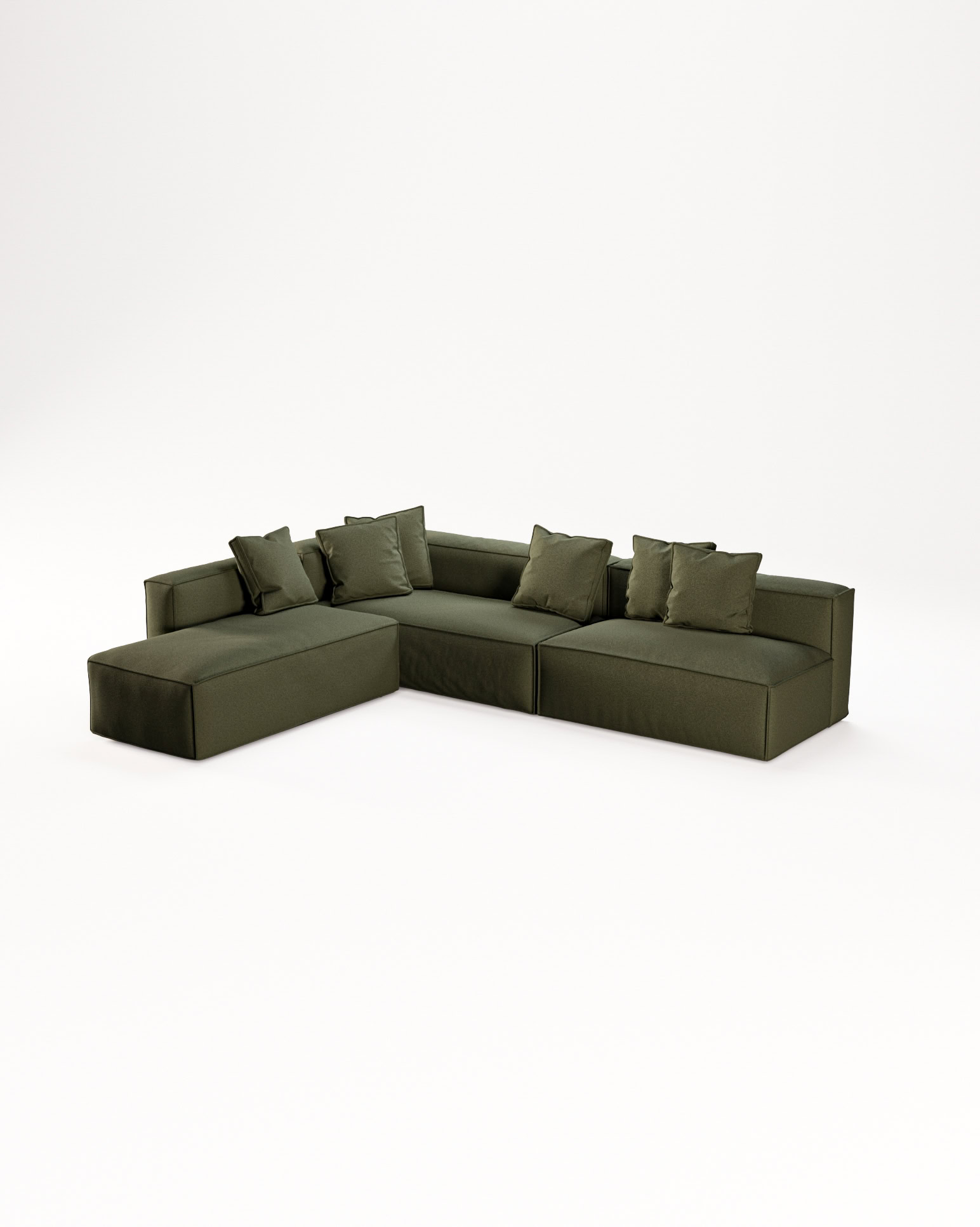 La collezione si compone di 7 moduli: sofà con braccioli, angolare destro, angolare sinistro, chaise longue destra, chaise longue sinistra, modulo centrale e pouf. Grazie alla combinazione di questi elementi, il divano modulare Long Island permette di creare configurazioni su misura, ideali per spazi moderni e ambienti open space.