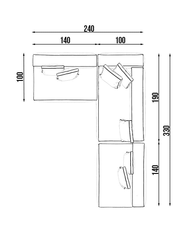 centrale ripetuto 2 volte e dal divano angolare sinistro. Il risultato è una soluzione modulare ad angolo dalle giuste proporzioni e un’estetica elegante,
