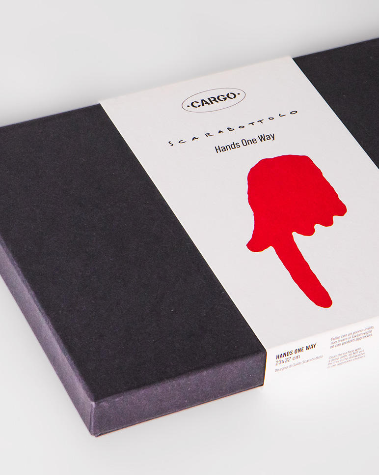 Il vassoio ONE WAY della collezione Hands, realizzato in collaborazione con Scarabottolo, fa parte della Cargo Gallery: la linea di edizioni speciali della Cargo Collection dedicata a oggetti d’arredo e d’uso quotidiano valorizzati dal contributo di illustratori e grafici contemporanei.