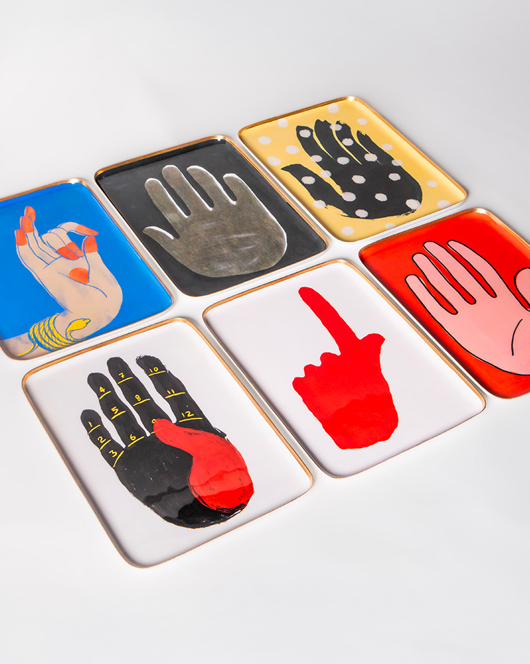 Le mani rappresentate – che accolgono, salutano, contano, benedicono, stringono o indicano – diventano un linguaggio universale capace di comunicare emozioni, invitare, consigliare e raccontare gesti quotidiani. Il vassoio della collezione Hands è quindi non solo un oggetto pratico e funzionale, ma anche un elemento decorativo ricco di significato, perfetto per arricchire la casa con un tocco di design artistico e iconico.