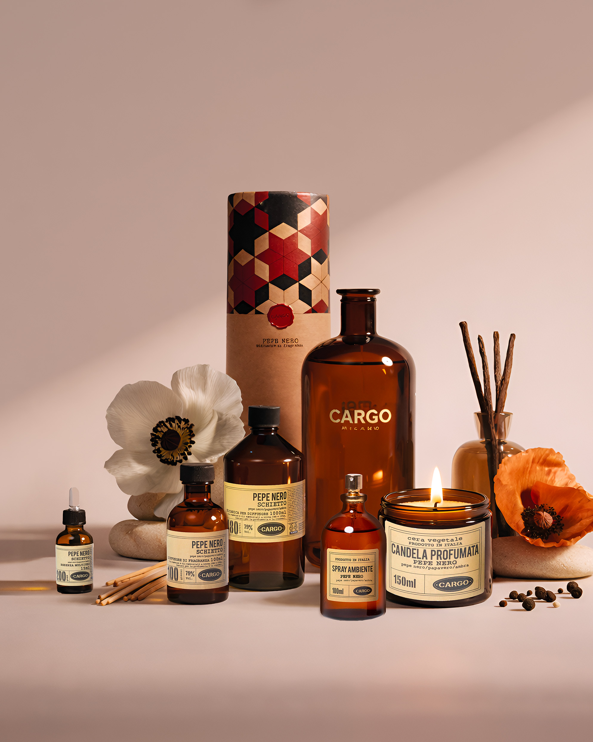 Non si è mai completamente vestiti senza profumo. Si dice. E uno spazio non è completamente arredato se non ha un’anima profumata, che racconta il tuo modo di essere. Diciamo noi. Forma e contenuto: l’emozione si fa con gli occhi, ma soprattutto con il naso: materie prime selezionate scrupolosamente, estratti puri e lavorazione artigianale per un prodotto di qualità, dove s’incontrano tradizione e creatività. Le profumazioni per la casa della Cargo Collection sono disponibili in vari formati, diffusori per ambiente e stick da 1L, 250 ml e 100 ml, candele da 150 ml, essenza 15 ml e lo spray 100 ml.