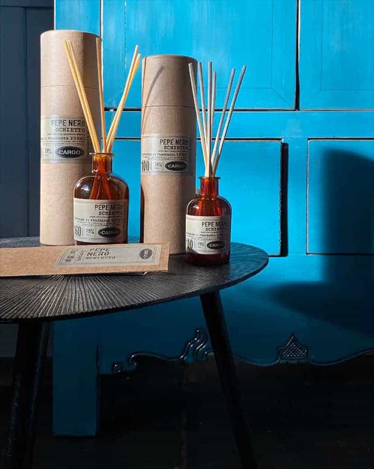 Non si è mai completamente vestiti senza profumo. Si dice. E uno spazio non è completamente arredato se non ha un’anima profumata, che racconta il tuo modo di essere. Diciamo noi. Forma e contenuto: l’emozione si fa con gli occhi, ma soprattutto con il naso: materie prime selezionate scrupolosamente, estratti puri e lavorazione artigianale, per un prodotto naturale e di qualità, dove s’incontrano tradizione e creatività. Le profumazioni per la casa della Cargo Collection sono disponibili in vari formati, diffusori per ambiente e stick da 1L, 250 ml e 100 ml, candele da 150 ml, essenza 15 ml e lo spray 100 ml.