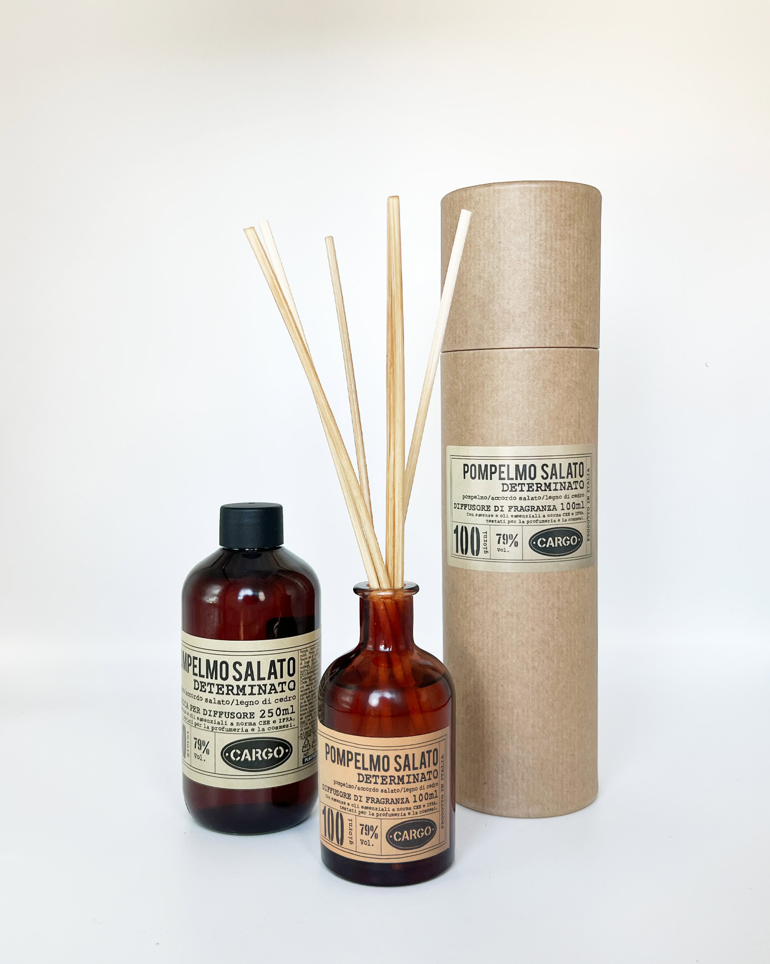 Non si è mai completamente vestiti senza profumo. Si dice. E uno spazio non è completamente arredato se non ha un’anima profumata, che racconta il tuo modo di essere. Diciamo noi. Forma e contenuto: l’emozione si fa con gli occhi, ma soprattutto con il naso: materie prime selezionate scrupolosamente, estratti puri e lavorazione artigianale per un prodotto di qualità, dove s’incontrano tradizione e creatività. Le profumazioni per la casa della Cargo Collection sono disponibili in vari formati, diffusori per ambiente e stick da 1L, 250 ml e 100 ml, candele da 150 ml, essenza 15 ml e lo spray 100 ml.