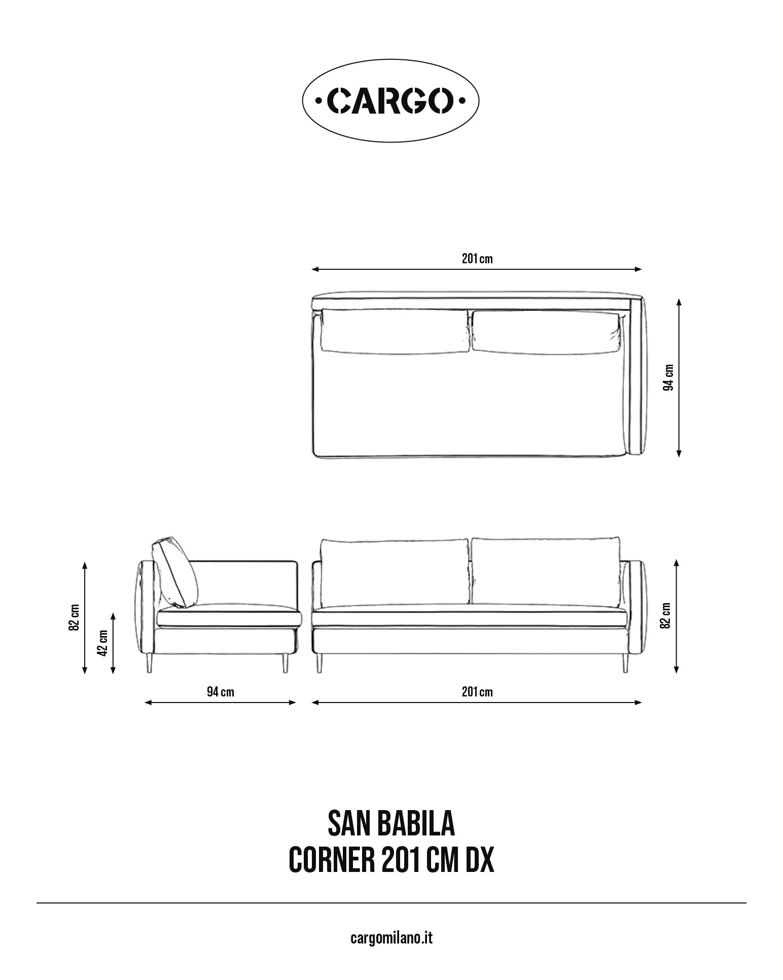 Il divano San Babila è un sistema modulare pensato per adattarsi con naturalezza a ogni esigenza di spazio e stile. Il Corner 201 cm Dx, largo 201 cm e profondo 94 cm, è un modulo autonomo che si integra perfettamente con un Sofa dello stesso sistema San Babila, risolvendo in modo elegante e funzionale la composizione ad angolo. Versatile e perfettamente proporzionato, il modulo Corner 201 cm Dx rappresenta la soluzione ideale per creare zone giorno dall’elevata qualità estetica, con un linguaggio contemporaneo e subito riconoscibile.