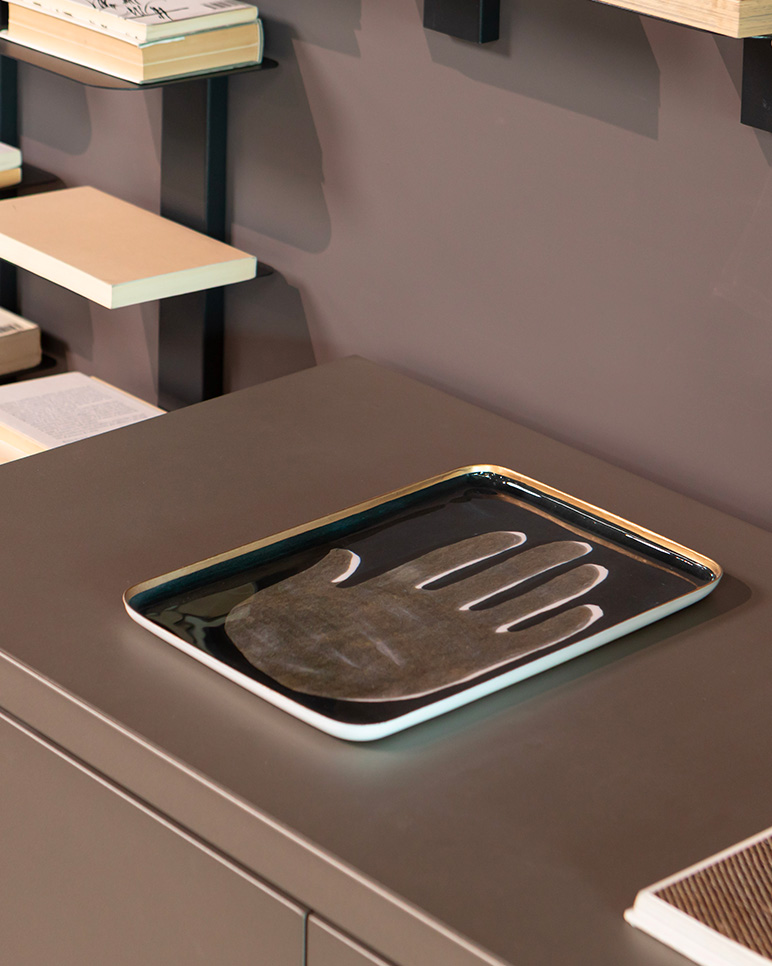 Vassoio STONE della collezione Hands – Cargo Gallery | Illustrazione di Scarabottolo