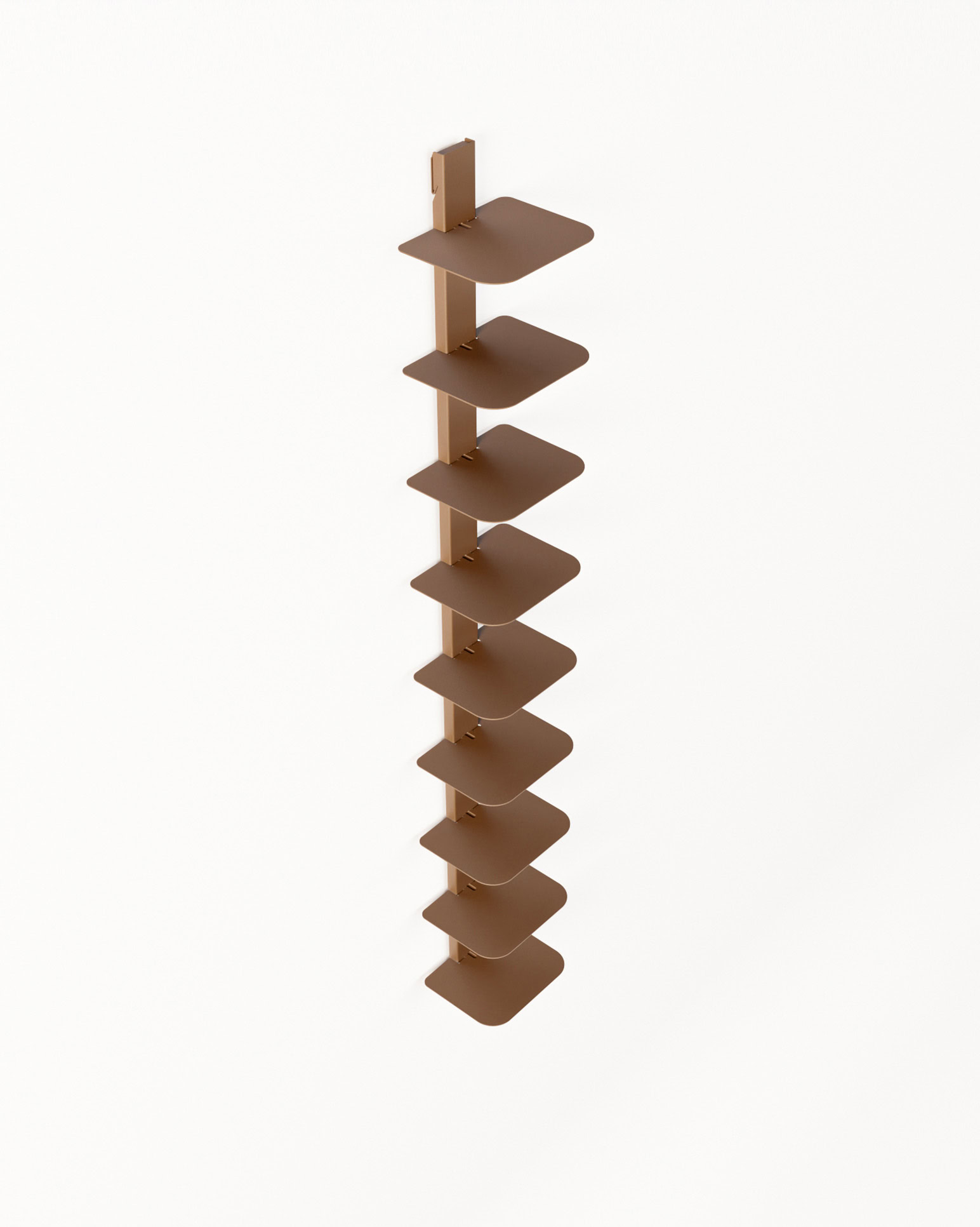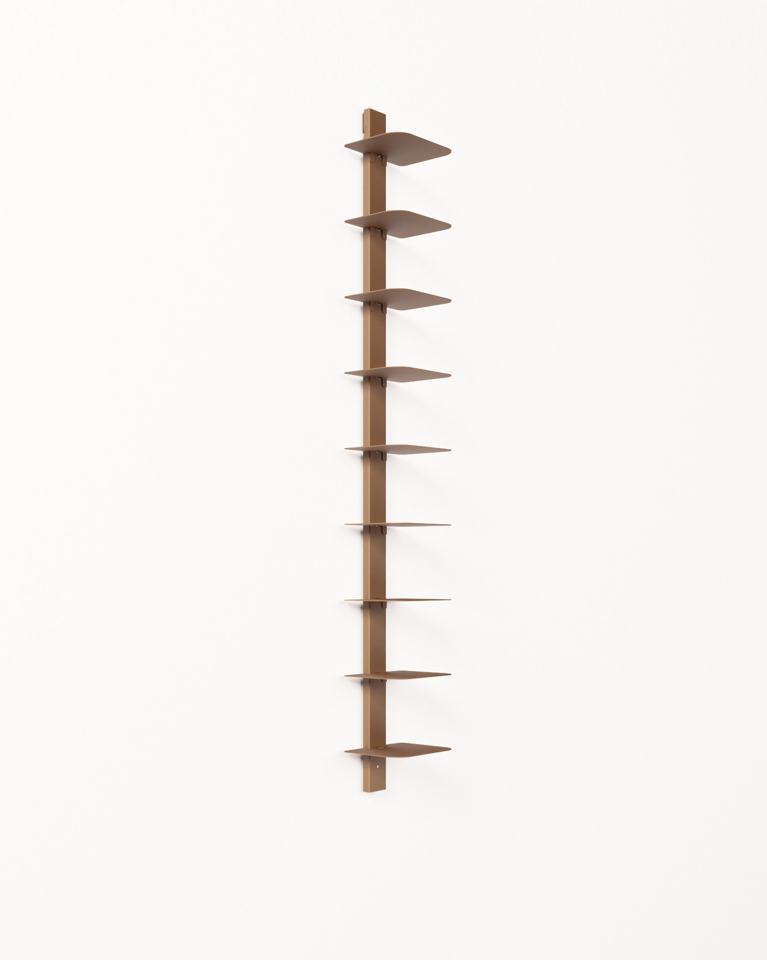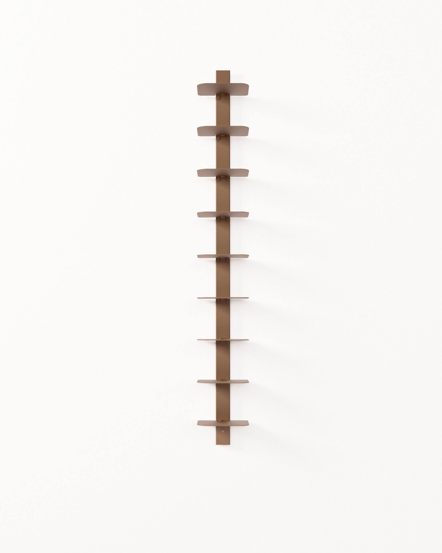 Grazie al design modulare, VERTEBRA è personalizzabile, pratica e facile da montare, perfetta per ottimizzare lo spazio con eleganza. È disponibile in tre altezze (105, 156 e 207 cm) e nei colori bianco, nero e ruggine. Il sistema si completa con la barra orizzontale da 90 cm, che consente il montaggio di tre moduli verticali con mensole, per una soluzione da parete funzionale e di forte impatto estetico.